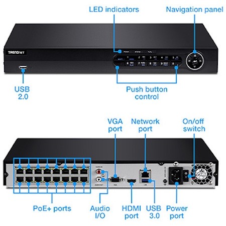 ضبط ویدئو از 16 کانال | امکان مدیریت تا شانزذه دوربین TRENDnet | پشتیانی از ۲ هارد با ظرفیت بیش از ۱۲ ترابایت