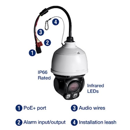دوربین مدار بسته مدل TV-IP430PI 1080p FULL HD : 2MP رزولوشن | 4x زوم اپتیکال | زوم دیجیتال 16x و فوکوس اتوماتیک | قابلیت دید در شب تا 30 متر (100 فوت)