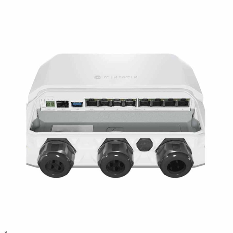 مانند نسخه داخلی، این RB5009 دارای 7 پورت اترنت گیگابیتی، یک پورت اترنت 2.5 گیگابیتی، یک قفس SFP+ 10G و یک پورت USB3 با اندازه کامل است!
