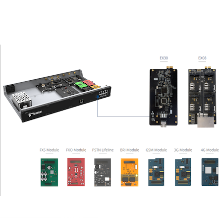 روی کارت توسعه EX08 میتوانید ۴ ماژول توسعه که شامل هر یک از ماژول های O2 – FXO 2 و S2 – FXS2 و ماژول ترکیبی ۱FXS-1FXO و ماژول GSM میشود، گذاشت.